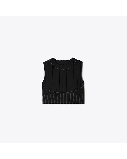 Women's Black Wool Twill Pleated Top