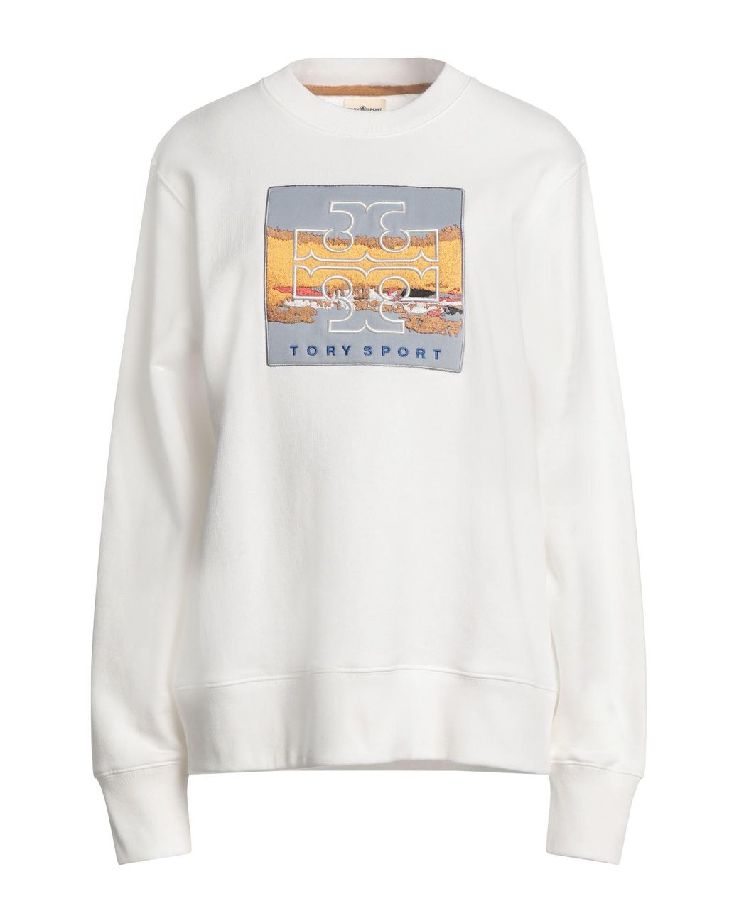 TORY SPORT. french terry, plain colour with appliqués, embroidered, brand logo, crewneck, long sleeves, machine wash, do not bleach, do not tumble dry. 100% Cotton.