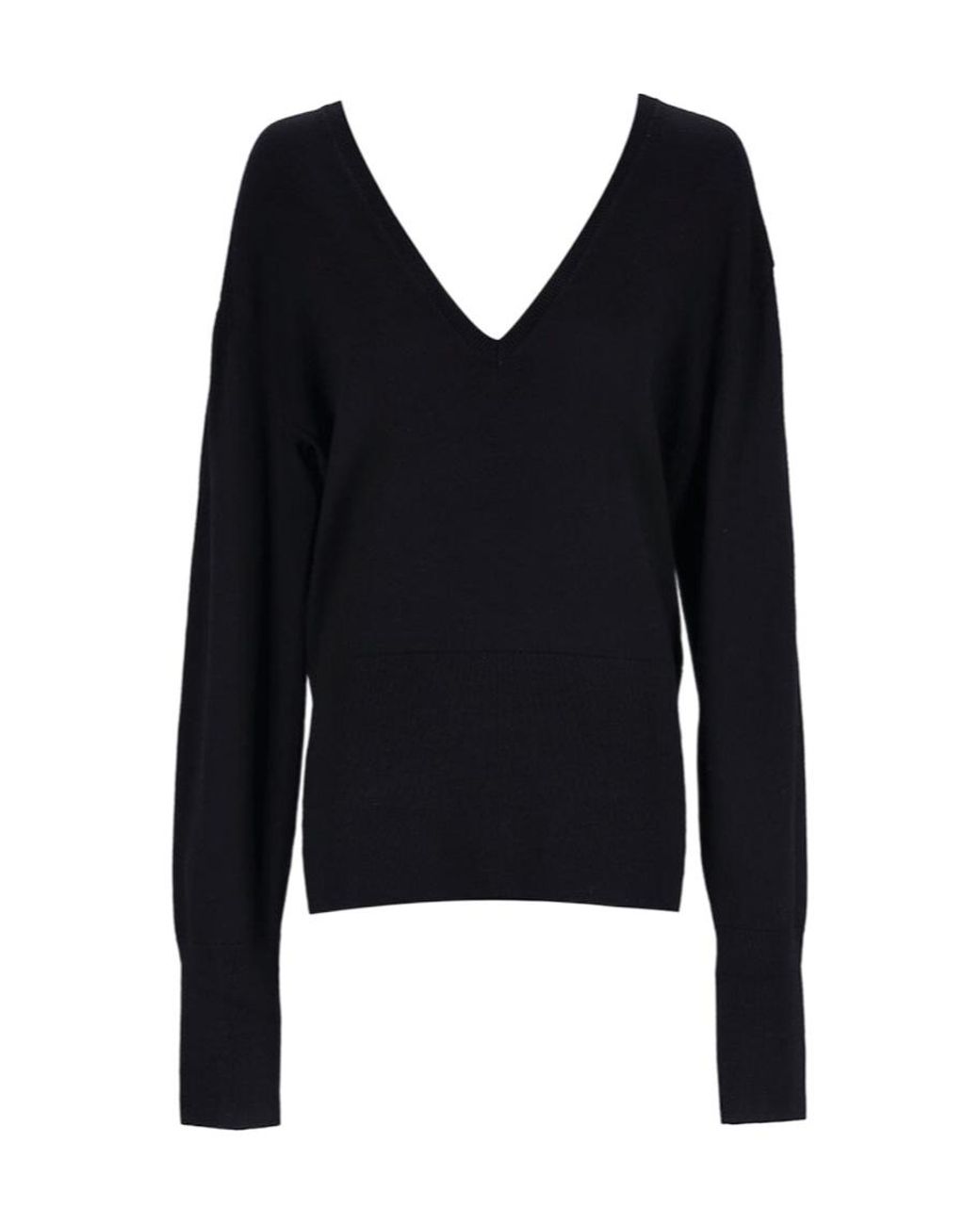 Long sleeves, deep V-neck, ribbed cuffs and hem. Colour: blue