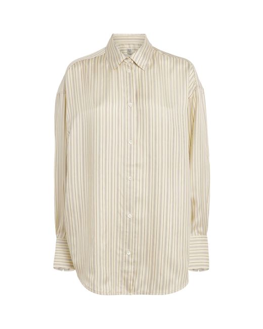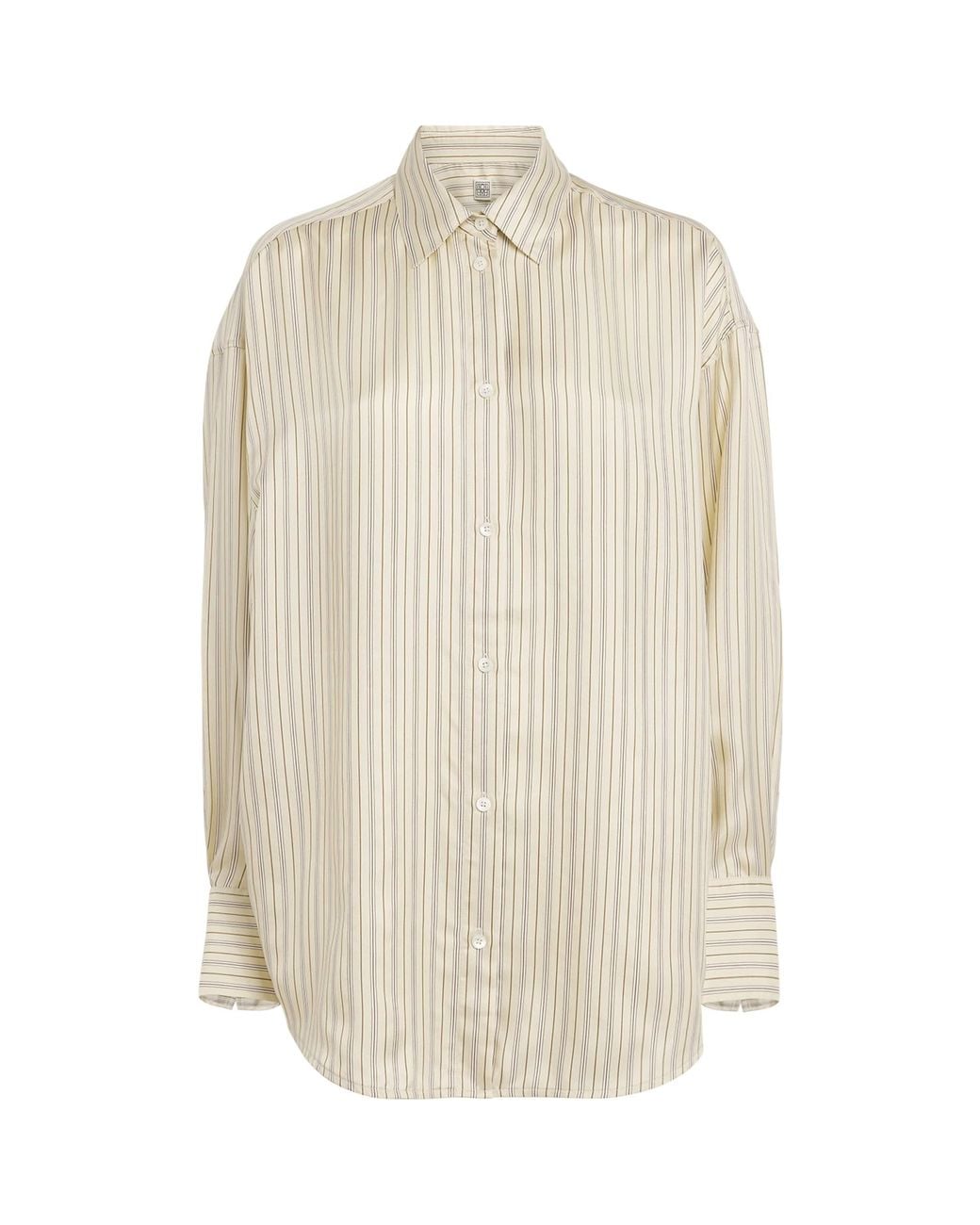 A classic shirt is a cornerstone of any wardrobe, equally at home with tailored separates and casual denim. This toteme iteration elevates the essential with contrasting stripes and a relaxed, pure silk construction, embodying versatility with a distinctly refined edge. Colour: white
