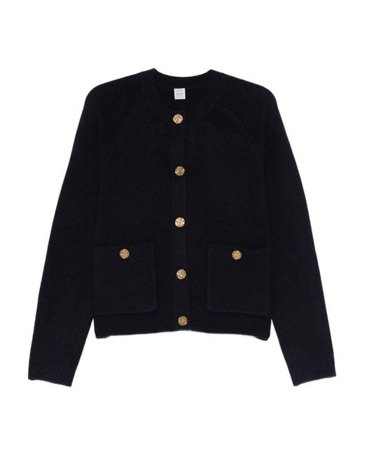 Navy blue hammered buttons two front pockets round neck long sleeves ribbed trims Colour: Blue and green Composition: Elastane 100%, Wool 93%, Polyamide 6% MPN: 261WRT4357YA0279016