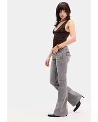 Go to YOOXTRUE RELIGION. flared jeans, denim, faded, plain colour, brand logo, medium wash, high waisted, belt loops, regular fit, 1 button, zip fastening, pockets, machine wash, do not bleach, do not tumble dry. 44%