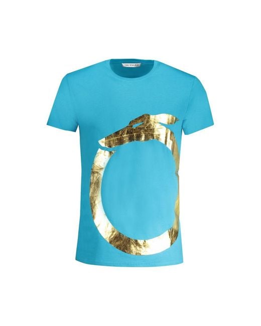 Elevate your casual style with this Trussardi light blue T-shirt. The epitome of modern elegance, this tee boasts a sleek print embellished with the iconic Trussardi logo. Crafted from the finest cotton, it promises comfort and durability, making it an ideal choice for discerning gentlemen who prize quality and fashion.