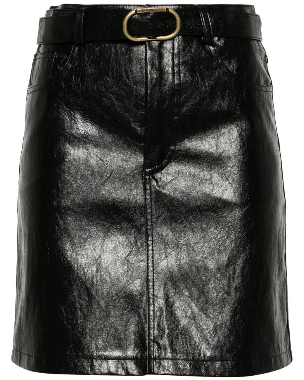 Black smooth grain cracked effect logo-engraved antique-effect hardware high-waisted belt loops front button and zip fastening detachable and adjustable waist belt logo-buckle fastening classic five pockets full lining Size: 38. Gender: Female. Material:Cotton/Viscose/Polyester/Metal/Polyester.