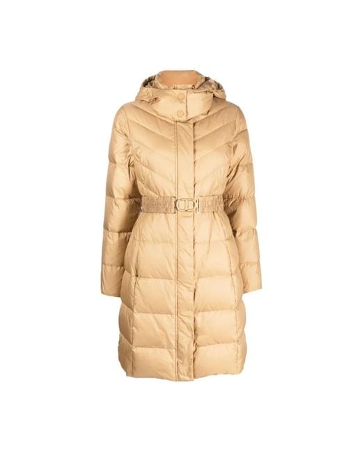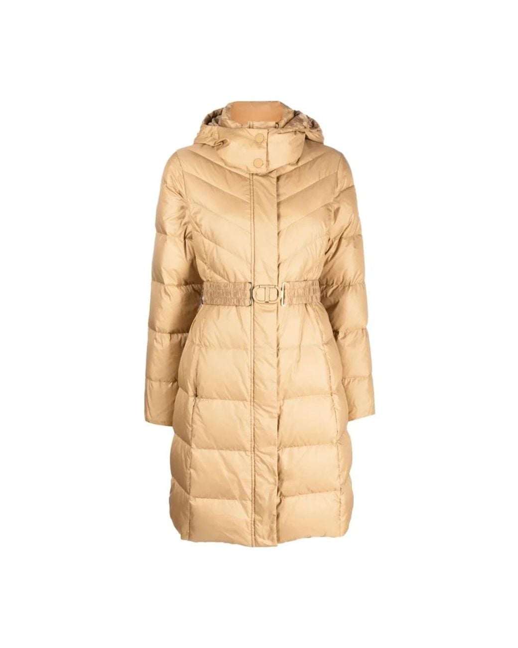 Stay warm and stylish with the Twinset Oval T Down Jacket for women. This jacket features a unique buckle design and is perfect for chilly days. Shop now and elevate your winter wardrobe with Twinset. Colour: natural