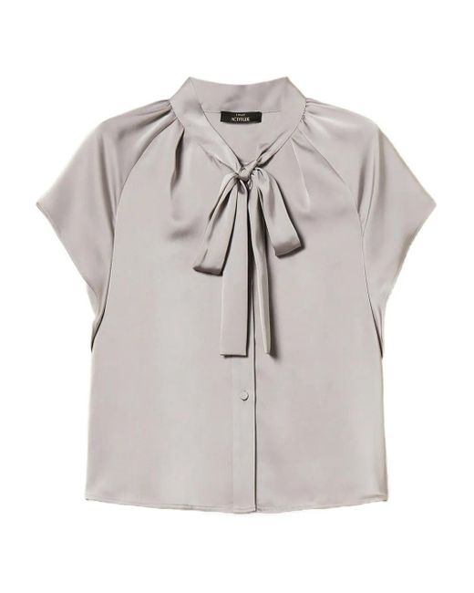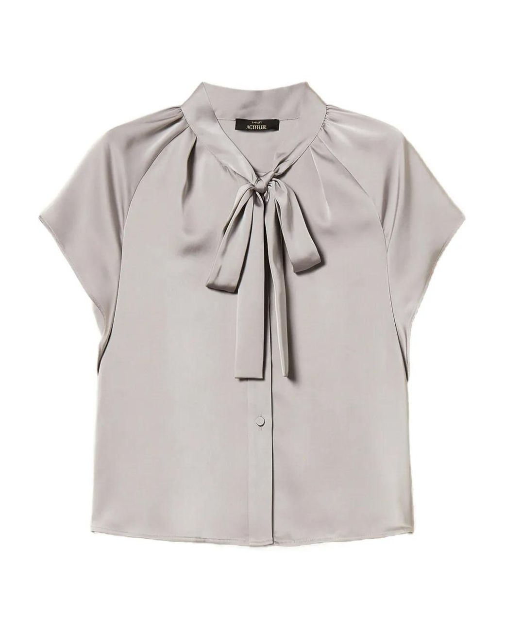 Grey bow tie neck short sleeves button fastening short sleeves Size: XS. Gender: Female. Material:Polyester. Colour: grey
