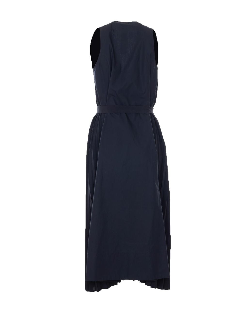 Twinset black pleated dress, v-neck, sleeveless, belt on waist. . Composition 100 cotton, 100polyester Colour: blue
