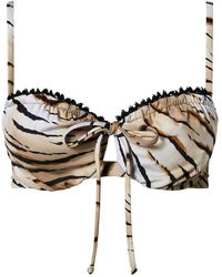 Go to FARFETCHIvory white botanical print short sleeves waist tie detail crew neckline Size: S. Gender: Female. Material:Cotton. Colour: white
