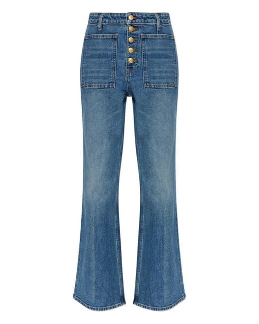 Button-Detailed Mid-Rise Wide-Leg Jeans - Blue