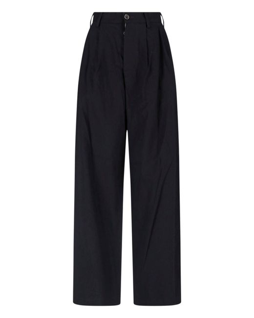 - Tailored trousers Uma Wang in black linen blend - high waist - button closure - belt loops - two side pockets - two back welt pockets - wide legComposition: 57% Linen, 41% Viscose, 2% Elastodiene Colour: blue