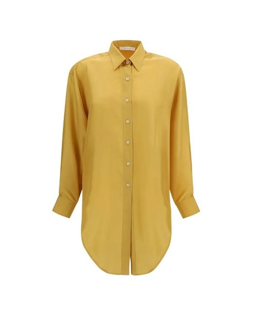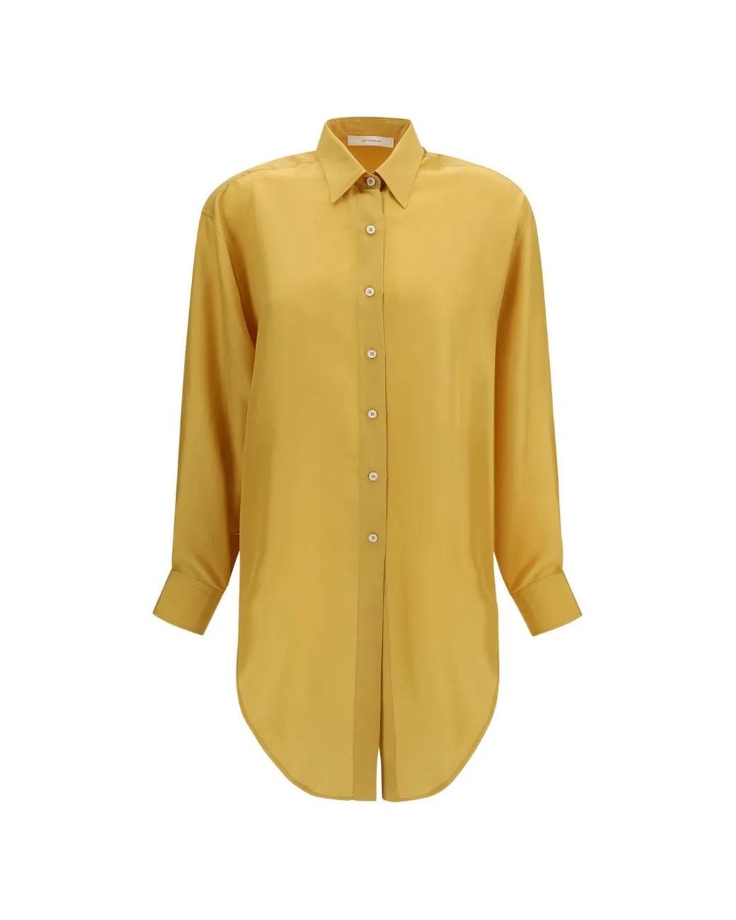 Mustard yellow button fastening long sleeves rounded hem buttoned cuffs point collar Size: 40. Gender: Female. Material:Silk/Mother of Pearl. Colour: yellow