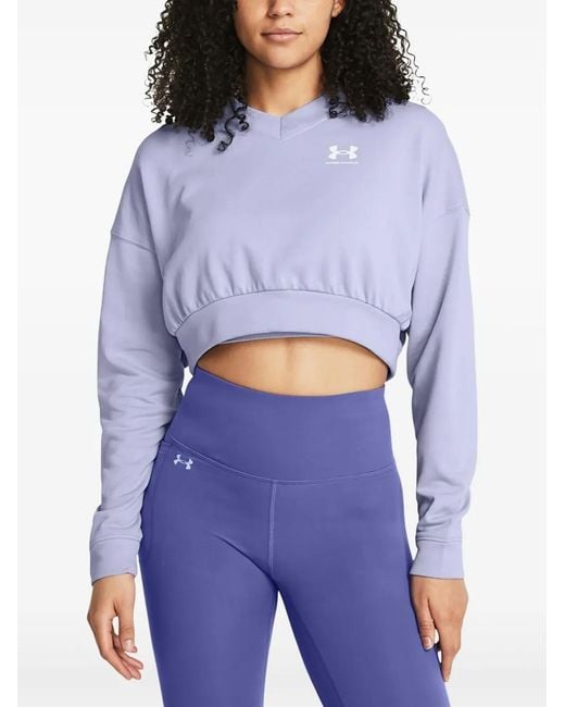 Lilac purple logo print at the chest ribbed trim cropped Size: XS. Gender: Female. Material:Cotton/Polyester. Colour: purple