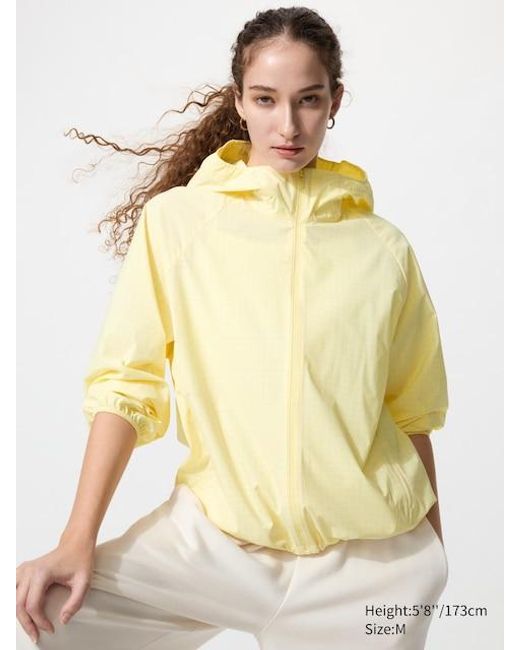 Women's Yellow Uv Protection Pocketable Parka (Patterned)