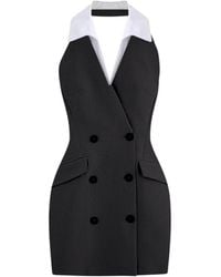 Go to Wolf & BadgerBella, the ultimate blend of polished elegance and effortless allure. Designed with a striking halter neckline and a crisp white collar, Bella reinvents classic tailoring with a modern twist. The double-breasted design adds