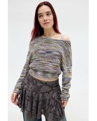 Go to Urban OutfittersSpace-dye effect shrug in a chunky knit style. Classic shrug silhouette with a slash neck, long flared sleeves and a super-cropped hem, perfect for layering. Colour: blue