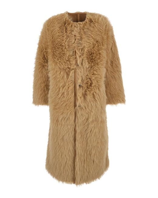 - Shearling Coat With Round Neck And Front Closure