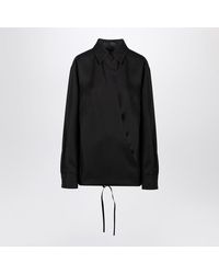 Go to TheDoubleFBlack wool mohair and silk shirt by featuring a classic collar long sleeves with buttoned cuffs drawstring at the bottom of the garment and cross-over placket at the front. Colour: black