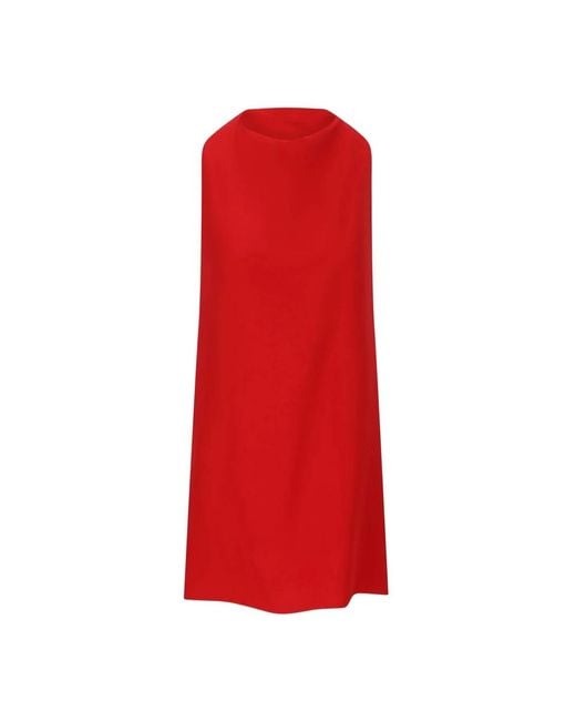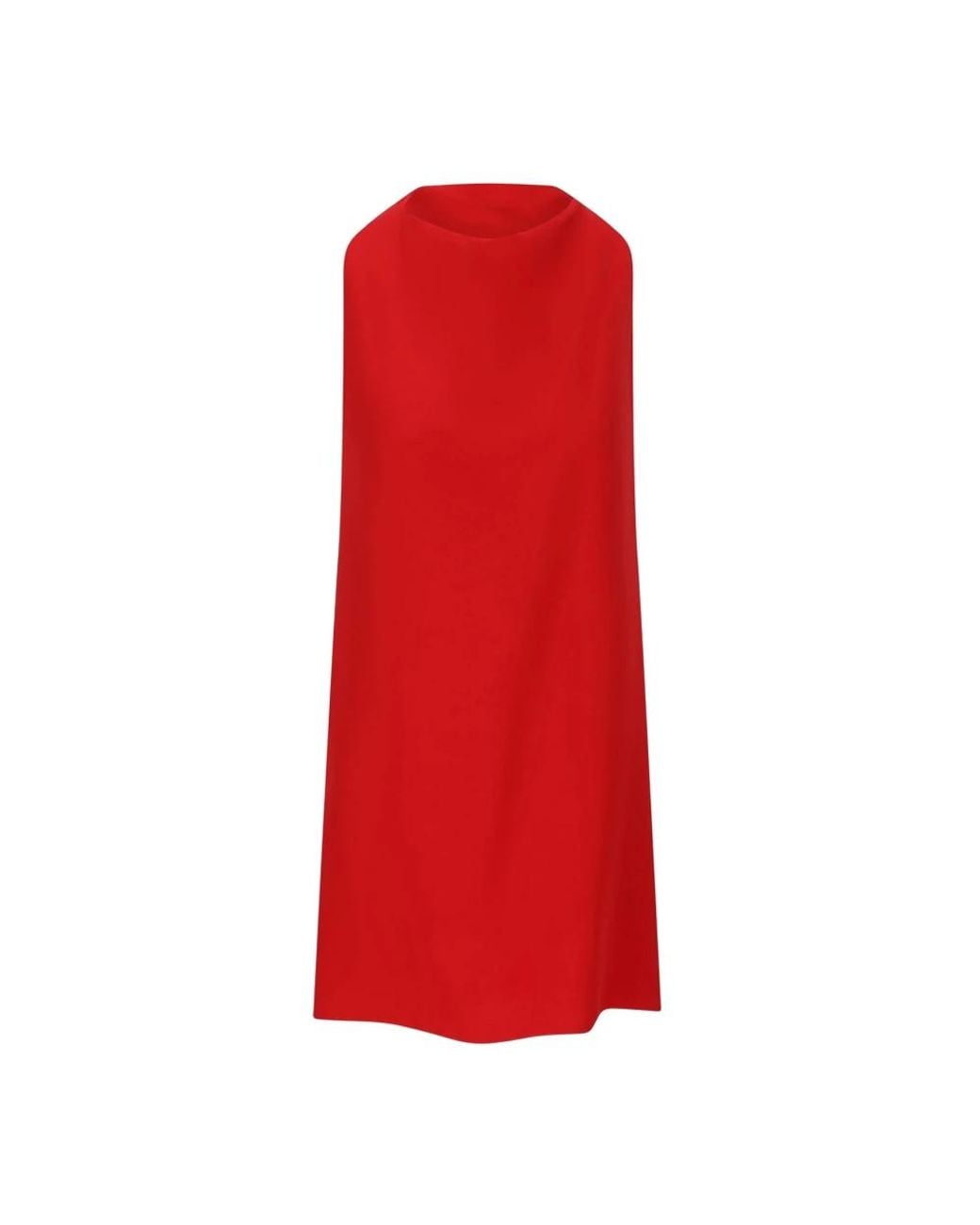 Designer Draped Silk Dress with a draped front and plunging back, crafted for elegant evening looks. The design highlights a covered double-button closure and an unlined silk finish for fluid movement. Key attributes: Red | Paris | Silk | Covered double button closure | Unlined | Draped front | Plunging back | Composition & care: 100% silk Colour: red