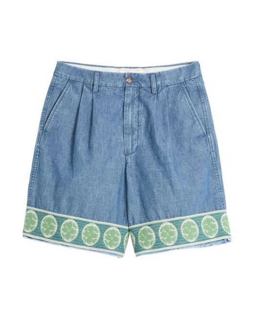 Designer light blue casual shorts for men with button fly fastening, two side slash pockets, two rear button-fastening jetted pockets, and embroidered motif. This piece fits true to size. Model is 1.84m / 6ft 1in wearing size 48 (It). Colour: blue
