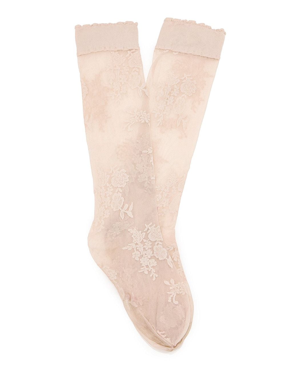 This season; the Italian house marries its signature couture know-how with an everyday wearability across beautifully-crafted shoes and handbags that strike a note of ease and practicality.These neutral socks are distinguished by their sheer lace construction and further elevated by delicate floral embroidery. Combine with elaborate sandals or simple ballet flats. Colour: white