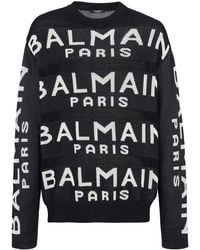 Valentino Men's Blue Wool Intarsia-Knit Logo Jumper