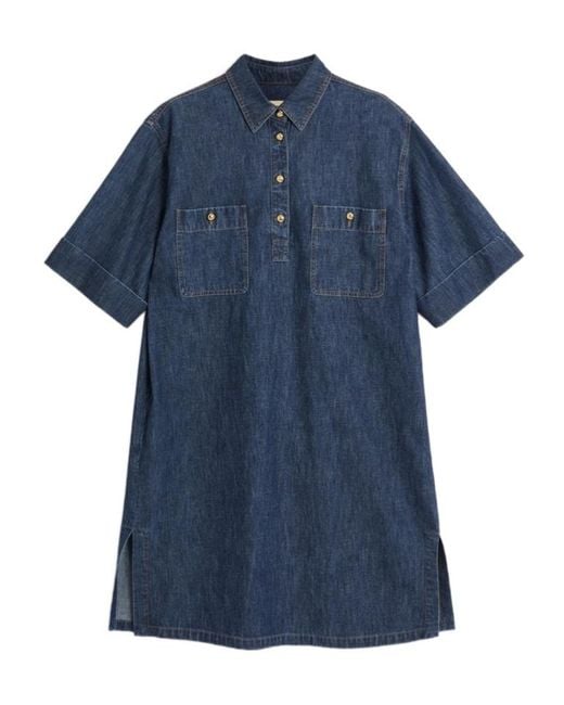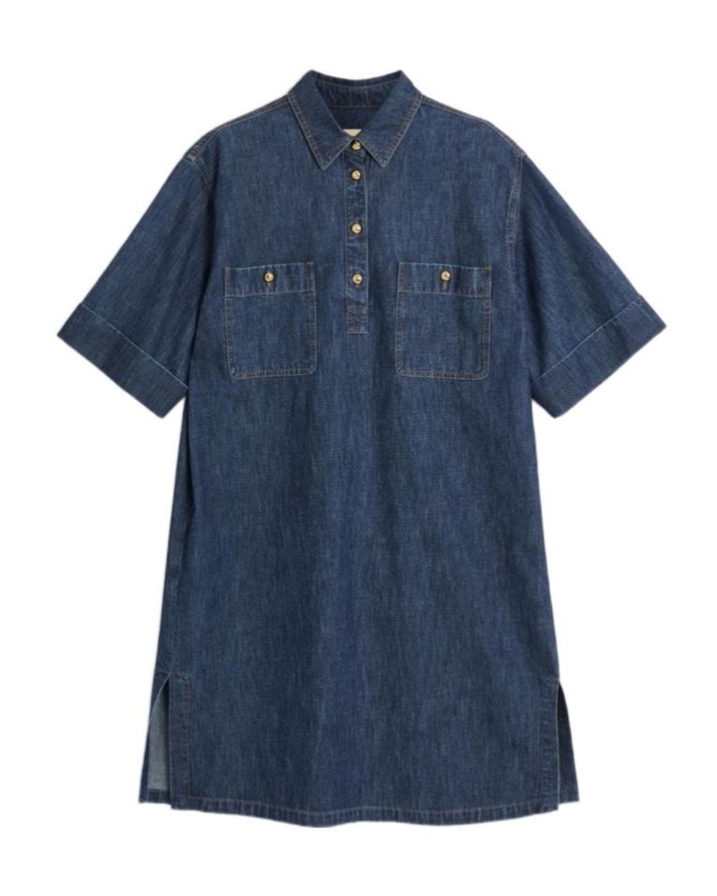 Women's Blue Collared Short-Sleeve Denim Shirt Dress