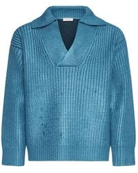 Valentino Men's Blue V-Neck Knitwear