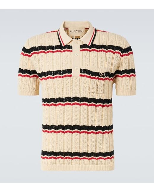 - Vlogo Pointelle Striped Cotton Polo Shirt