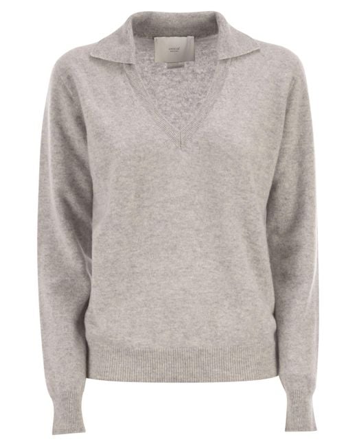 Soft and warm, this new V-neck polo neck jumper in pure cashmere and shaved wool has a comfortable, feminine design. The soft lines and slightly dropped shoulders complete the look. - Polo neck - V-neck - Dropped shoulders - Shaved wool knit DESIGNER ID: V54623 GRIGIO MEDIOSpecificationValueYear2025SeasonFALL / WINTERMaterials100% CashmereColorGREYColor CodeGRIGIO MEDIOMade InItalyGenderWomenSize FormatIT Colour: grey