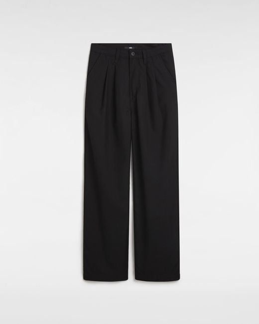 Vans Alder Relaxed Pleated Pant – Women's Bottoms Street style goes elevated. These wide-leg trousers bring a fresh dimension to your wardrobe with their relaxed silhouette and clean lines—perfect for dressing up or keeping it casual. **Color & Material Composition:** - Cream-colored neutral that pairs with everything - 80% Polyester, 20% Viscose blend for smooth drape - Front pleats add sophisticated structure - Button closure with belt loops for versatile styling **Fit & Comfort Features:** - Ultra-wide leg cut for maximum movement - High-waisted design sits comfortably at natural waist - Roomy side pockets keep essentials handy - Lightweight fabric flows naturally for all-day comfort Colour: black