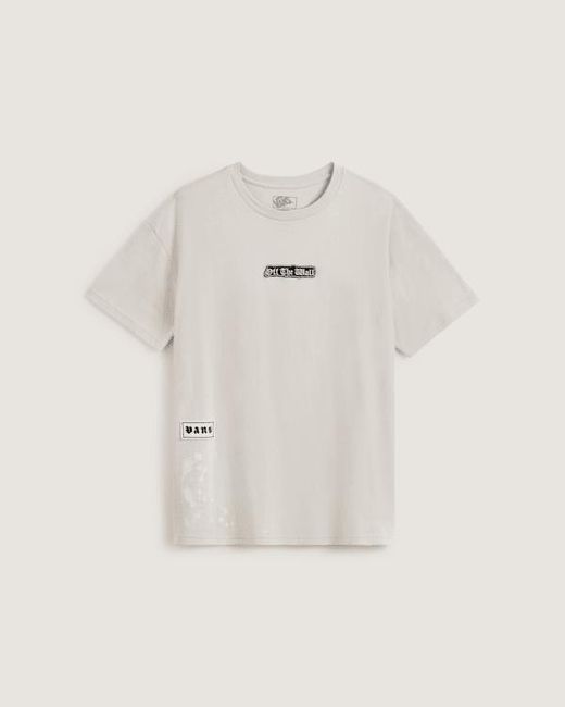 The Vans Unpatched T-Shirt is a 100% cotton crew neck. It has short sleeves and Off the Wall branding on the front. It features a vintage workwash and has the Vans label on the lower body. Colour: natural