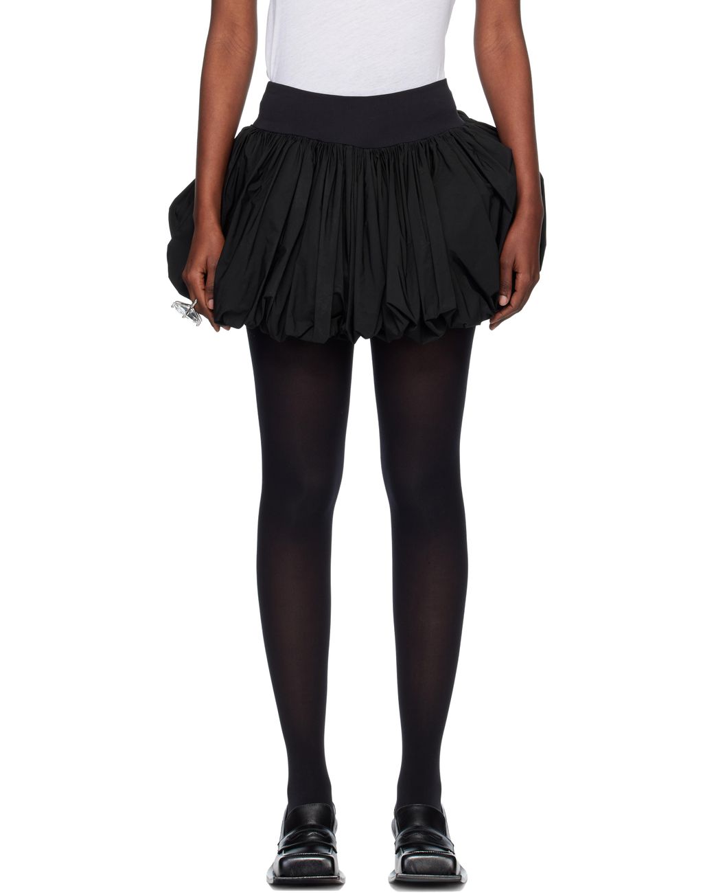 Padded taffeta miniskirt. · Gathering throughout · Low-rise · Elasticized waistband · Bubble hem · Integrated briefs-style lining Supplier color: Black Colour: black