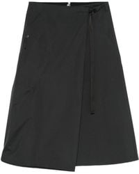 Go to SSENSEStretch recycled TerraTex™ nylon taffeta midi skirt. · Wrap construction · Lightweight, wind-resistant, and water-repellent · FC0-DWR coating, PFAS-free · Integrated press-release belt at waist · Two-pocket styling · Taped seams at interior Supplier color: Black Colour: black