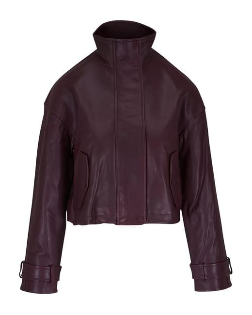 Women's Purple Button Leather Jacket