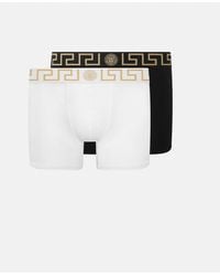 Versace Men's Black 2-Pack Low Rise Greca Border Boxer Trunks