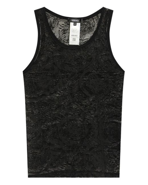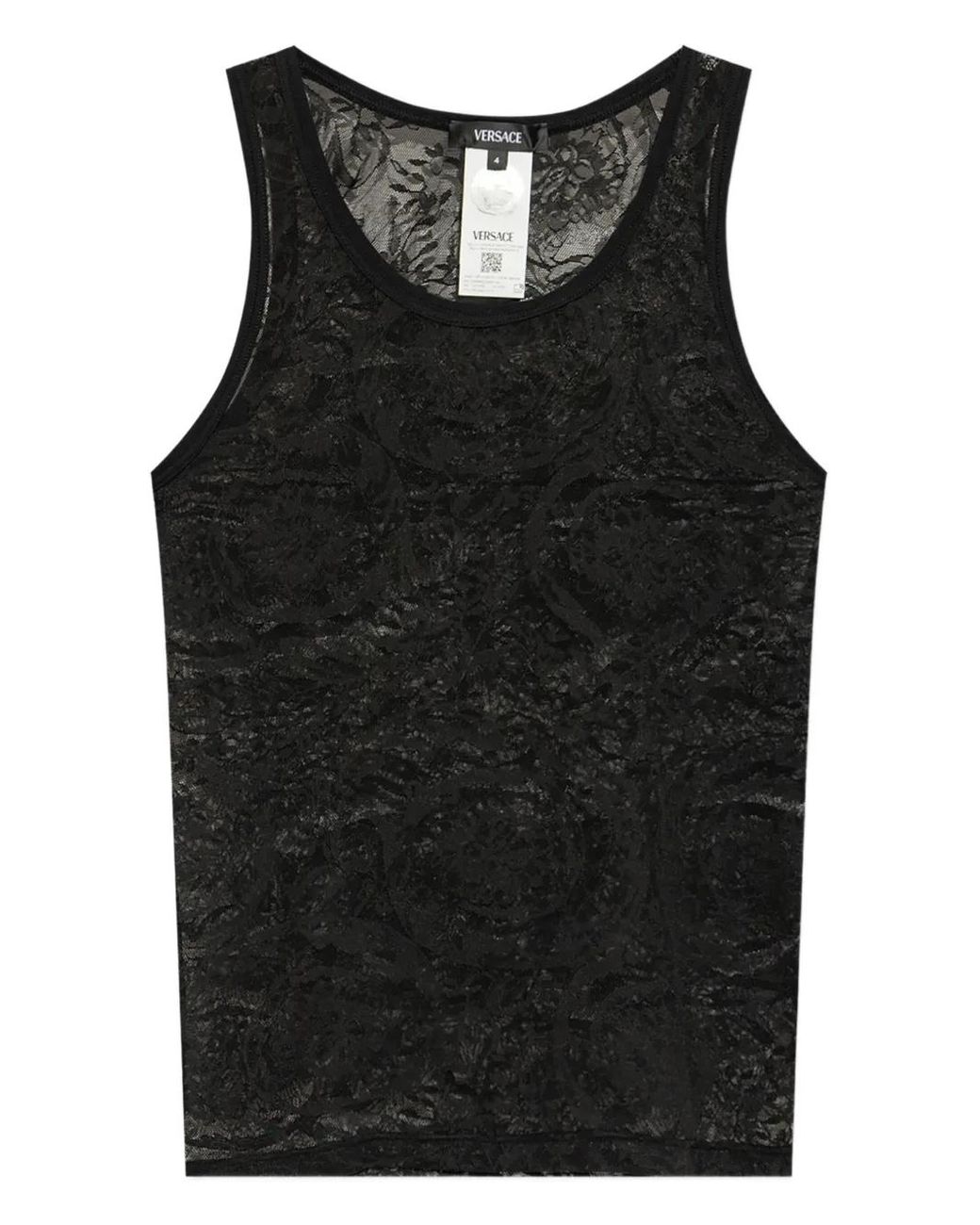 Black Barocco lace scoop neck sleeveless sheer fabric Size: 4. Gender: Male. Material:Elastane/Polyamide. Colour: black