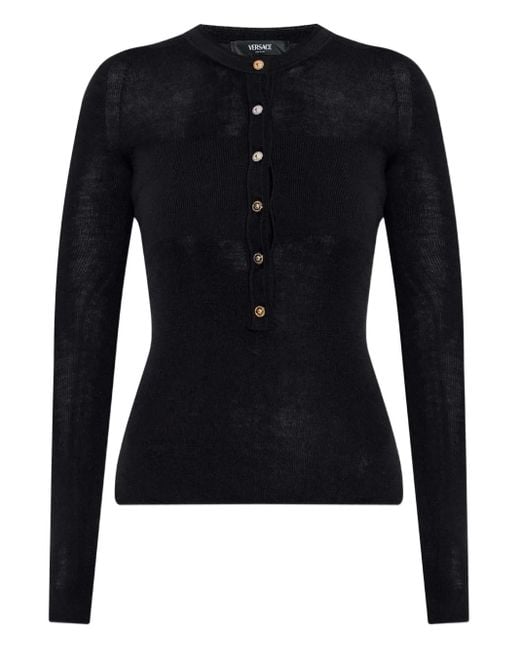 Black ribbed texture long sleeves round neck short front button fastening Size: 36. Gender: Female. Material:Elastane/Polyamide/Wool. Colour: blue