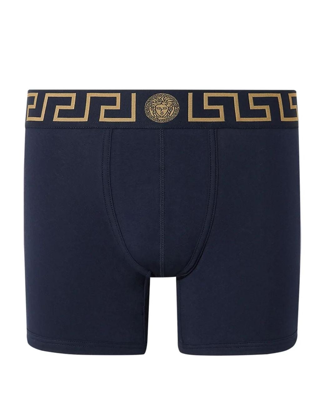 Navy blue stretch-cotton Medusa Head motif signature Greca detailing elasticated logo waistband thigh-length Just a reminder that this piece must be tried on over your own garments. Size: 3. Gender: Male. Material:Elastane/Cotton. Colour: blue