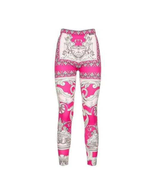 Versace Floral Leggings feature a vibrant all-over floral print and a high-rise waist, combining standout style with stretch for active wear or a trendy casual look. Key attributes: Multicolour | Polyamide | Stretchy fabric | Comfortable | Suitable for sports | High waist | Elastic waistband | All-over floral print | Ornamental details | Vibrant multicolour pattern | Dimensions & fit: High waist | Stretch fit | Composition & care: 84% Polyamide | 16% Elastane Colour: pink