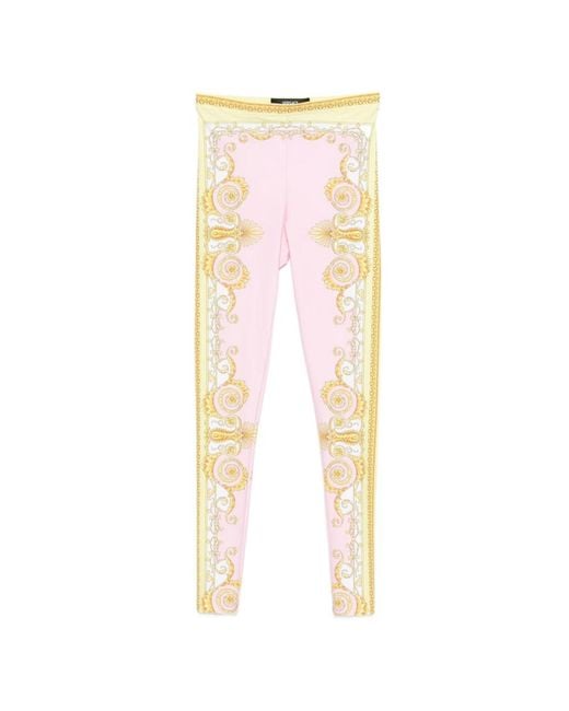 Versace Printed Leggings combine the house’s Spring Barocco motif with a stretch polyamide blend for a fitted, statement-ready silhouette. Designed for comfort and ease, they work well layered under long tops or styled as a bold casual piece. Key attributes: Multicolour | Pale yellow | Rose | Polyamide | Stretch fabric | Comfortable fit | Elasticated waistband | Pull-on style | Spring Barocco print | Ankle length | High-rise | Dimensions & fit: Fitted | True to size | Composition & care: 78% Polyamide | 22% Elastane Colour: pink