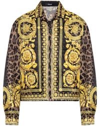 Go to SugarA black leather jacket from Versace redefines contemporary elegance. Featuring a high collar and zippered front, this piece showcases a modern silhouette. Luxurious gold-tone zippers and detailing enhance its appeal, while the striking