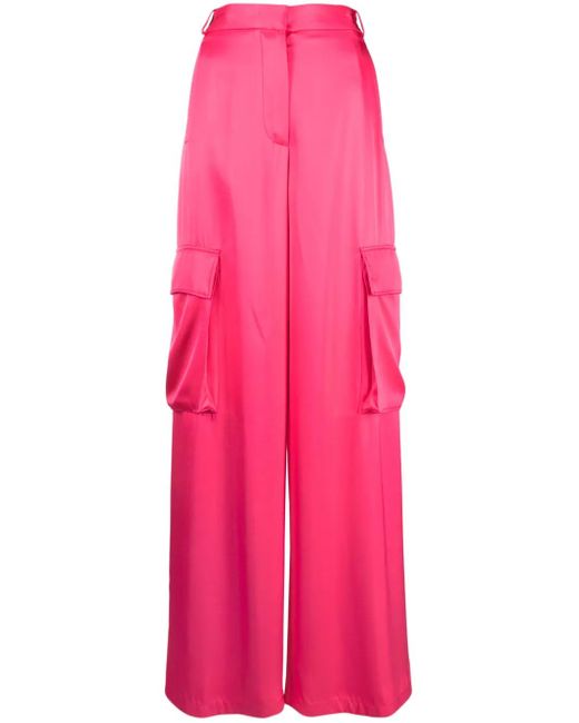 Women's Pink Satin Cargo Trousers