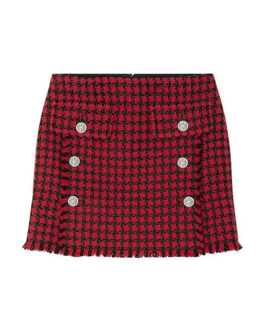 Women's Red Tweed Check Pattern Miniskirt