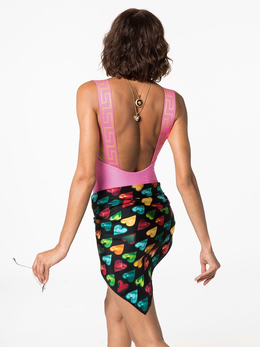 Go to FarfetchThe Retro Pink One-Piece Bikini by Versace is a beautiful piece that merges classic prints and modern style cuts. The one-piece features Greek trim, a low back and square neck. Colour: pink