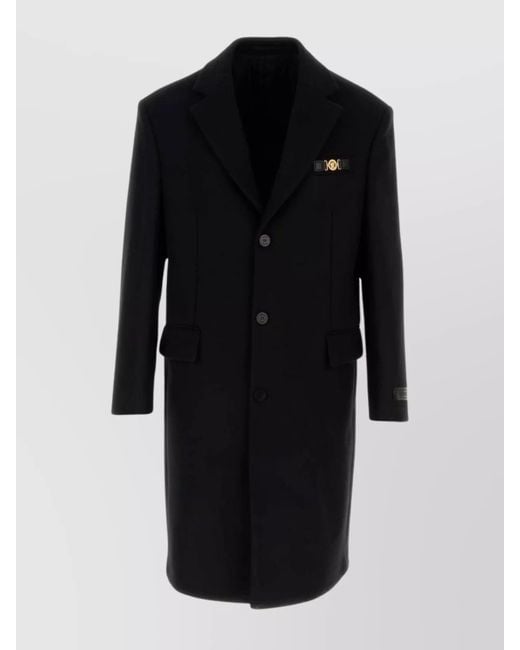 Men's Black Wool Coat With Back Vent And Notch Lapel