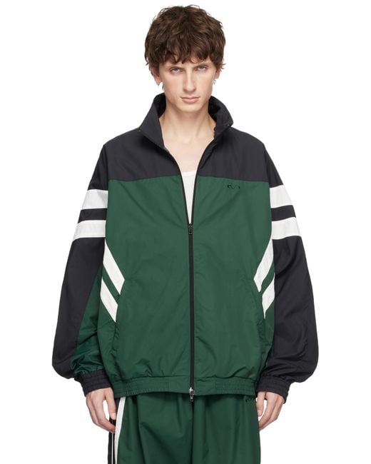 Taffeta jacket. · Panelled construction · Stand collar · Two-way zip closure · Logo embroidered at chest and back yoke · Zip pockets at waist · Elasticized hem and cuffs · Stripes at sides and sleeves · Full mesh lining Supplier color: Green/Black Colour: green
