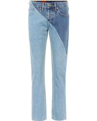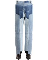 Vetements's collaboration with Levi's continues into SS18, with this reworked pair of vintage mid-blue jeans. The patchwork-like construction features contrasting hues across the side seams which is stitched alongside the original brown leather and suede tags. Style yours with an oversized jumper and sling-back court shoes. MAIN FABRIC:100%COTTON. Colour: blue