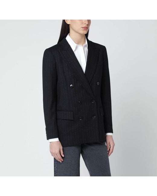 Women's Black Pinstripe Lurex Double-Breasted Jacket