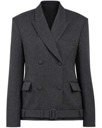 Go to YOOXDouble-breasted blazer Jersey Stretchy fabric Solid colour No appliqués Lapel collar Long sleeves Unlined Button fastenings Welt pockets Dry clean Do not tumble dry Power dressing meets elegance in this chic office outfit