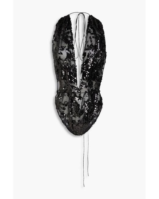 - Sequin-Embellished Tulle Bodysuit